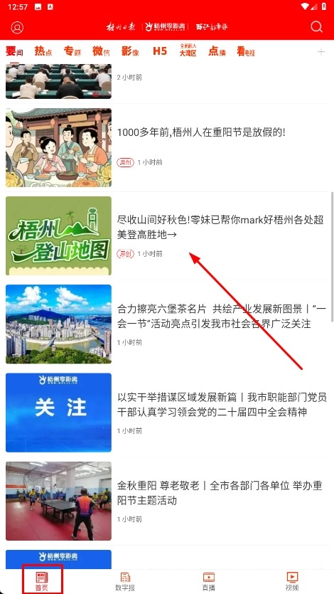 1、先进入首页,找到标题为【梧州登山地图】的文章并点击,即可查看该登山地图的详细信息。