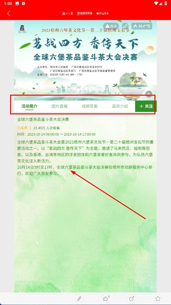 4、进入直播详情页后,就能查看【活动简介】等相关信息,从而了解活动的背景与具体内容。