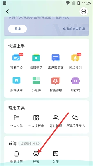 2、在功能页面里找到“设置”选项并点击进入设置界面,就能开展事项设置、计划与总结等多项配置工作。