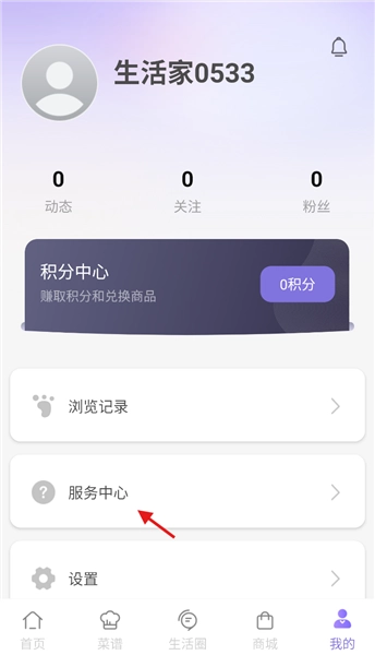 2、进入 “我的” 页面后,下滑界面找到 “服务中心” 板块,点击该选项跳转新页面。