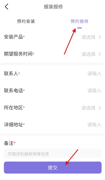 4、进入预约报修界面,仔细填写设备故障情况、联系电话等相关信息,核对准确后提交报修申请。