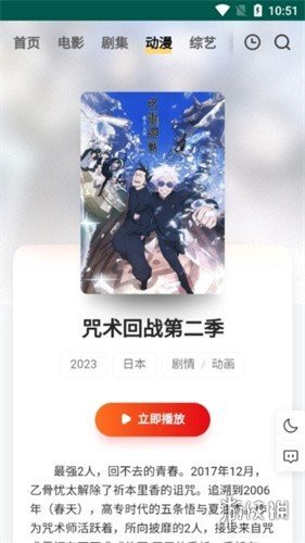 在视频详情页,能看到剧集的详细介绍,点击“立即播放”按钮就能开始观看。
