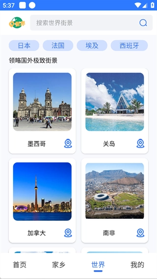 4. 亦能切换至“世界”板块,浏览全球各地的街景。