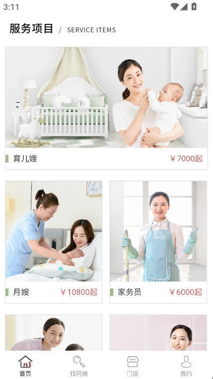 在《阿姨来了》软件里,服务项目分类清晰呈现,涵盖育儿嫂、月嫂、老年护理等不同类别,能让用户依据自身实际需求便捷挑选适配的服务。