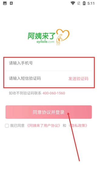 4、点击预约按钮后,页面将跳转至登录界面,此时需要填写【请输入手机号】和【请输入短信验证码】这两项信息,勾选相关协议后点击【同意协议并登录】按钮,即可完成登录操作。