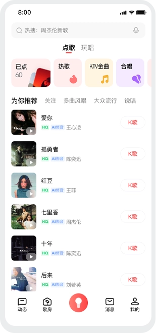 【评分体系升级】歌房现采用音准、节奏、情感等多维度综合评分机制;