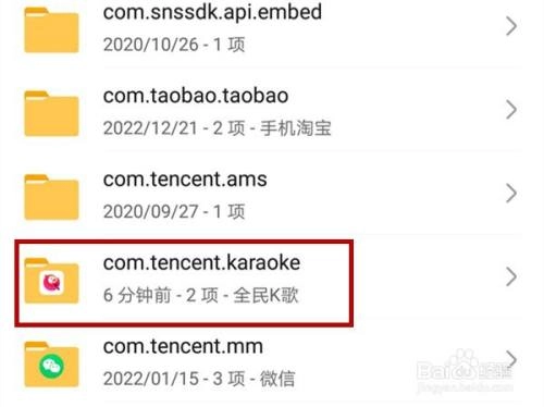 3. 找到com.tencent.karaoke这个应用对应的目录位置;