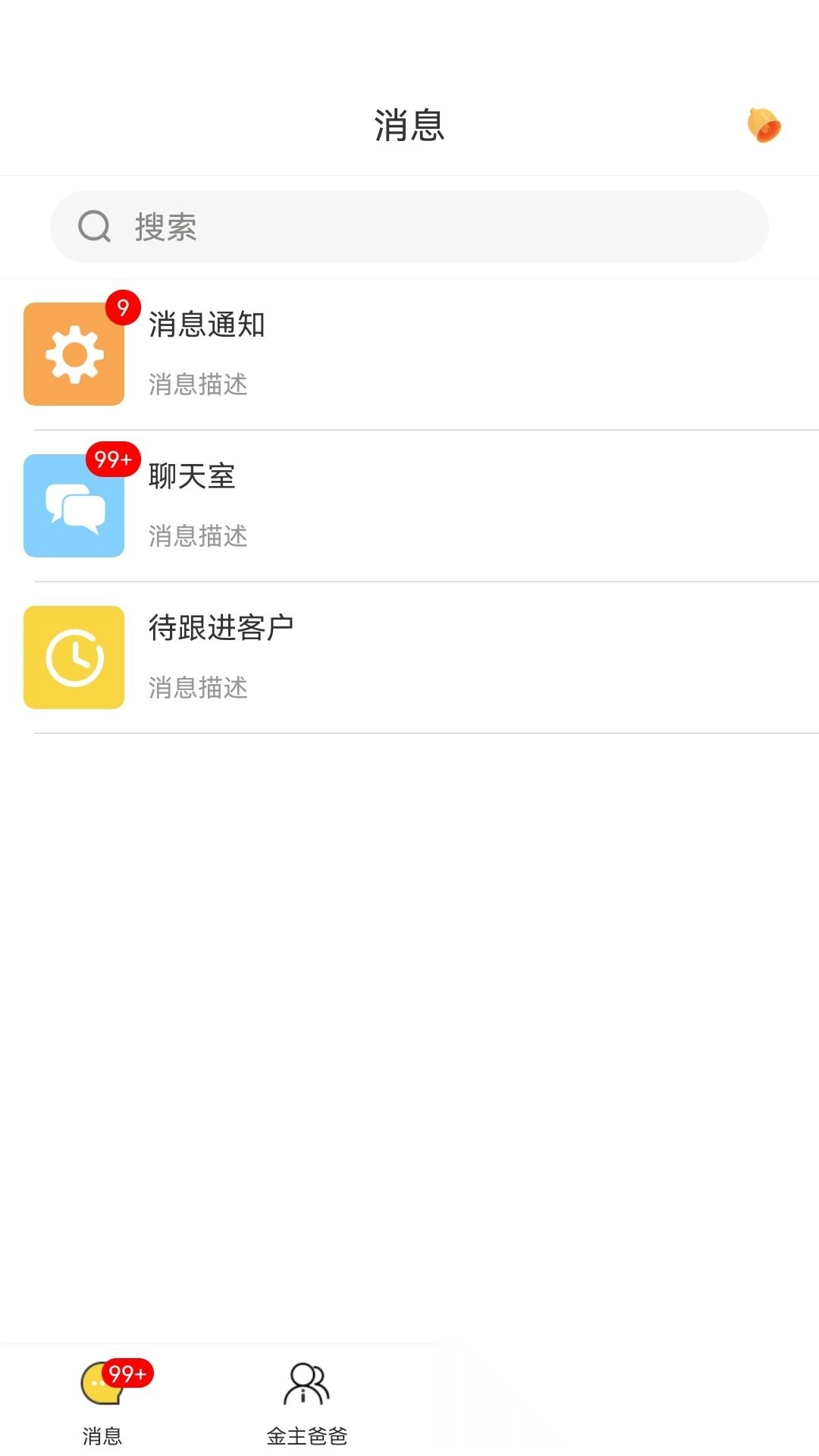 2、进入主页面后,点击底部的“金主爸爸”图标,就能查看客户信息以及相关的联系记录。