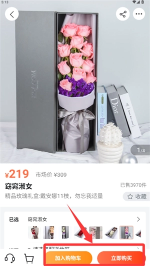 3、选好花盒进入详情页面后,既可以把它加入购物车,也能直接下单购买。