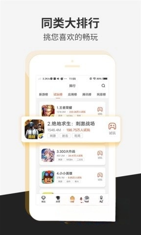 1、平台内设有排行榜,方便您试玩和挑选,您可以根据腾讯榜、网易榜、新游榜等选择心仪的游戏。