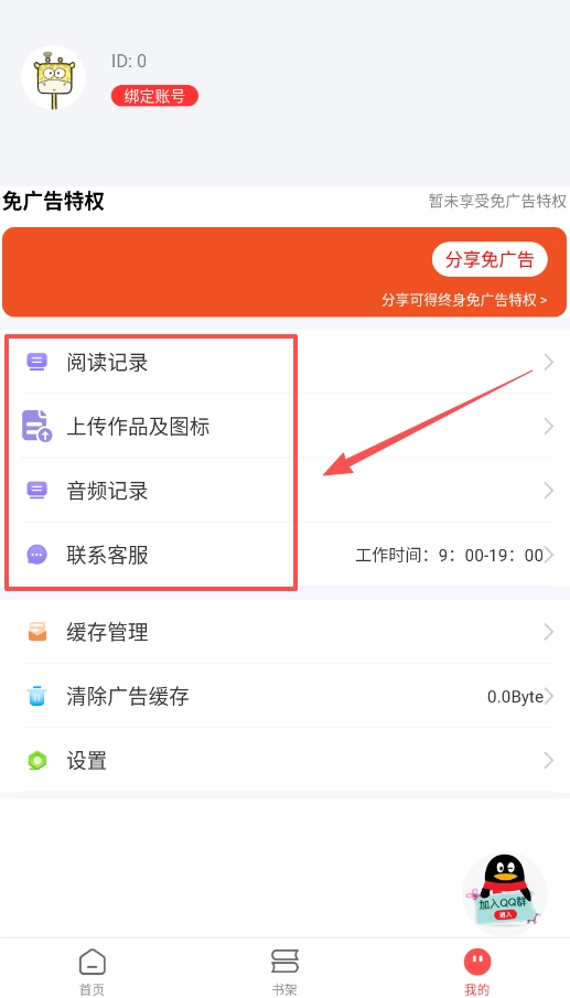 2、接下来看看个人中心,点击“我的”页面,这里的功能十分丰富,还能查看自己的阅读与听书记录。