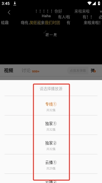 弹出该剧集节目的资源后,可选择线路,剧集数目,再查看。