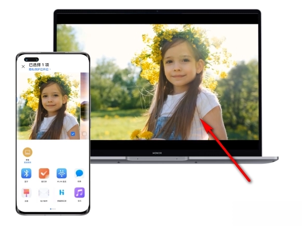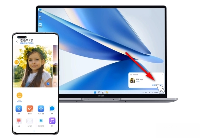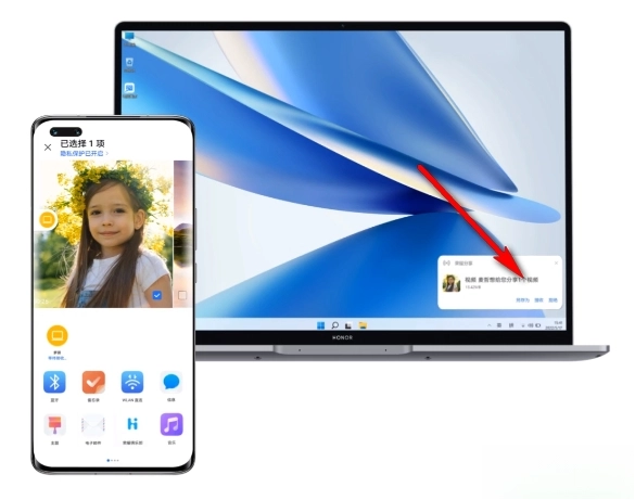 这是最流畅的体验。当两台都开启了“荣耀分享”功能的荣耀设备彼此靠近时,系统会自动识别并展示出对方设备的头像。