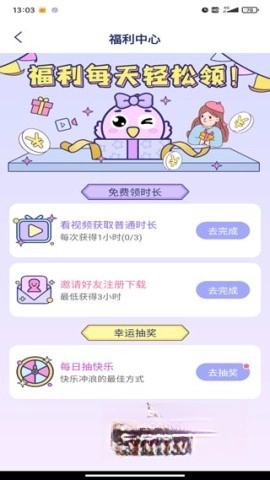 3、领取使用时长,可以通过完成任务获得免费时间;