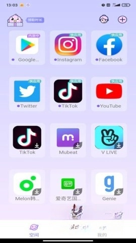 2、点击“空间”,可以导入众多有趣的手机应用;