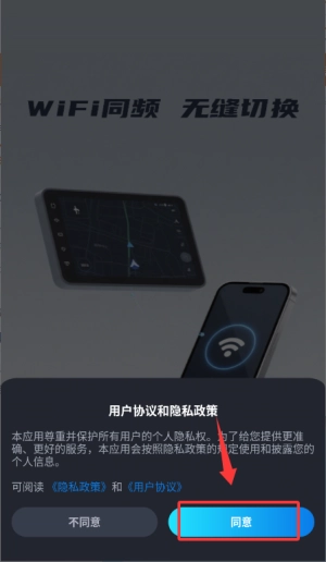 1、首次启动应用,请在用户协议弹窗点击同意进入。