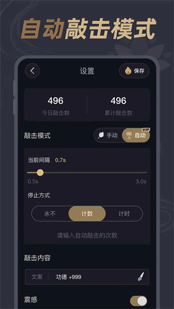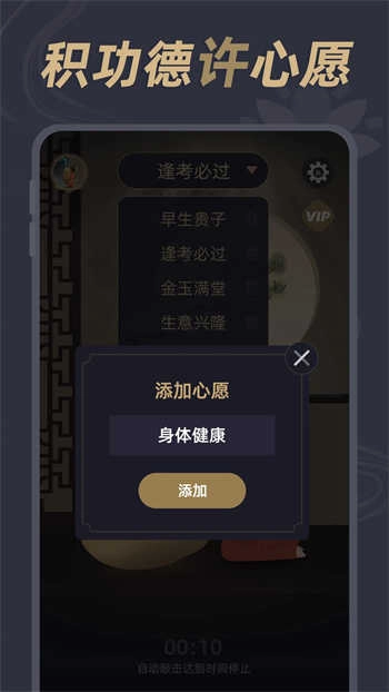 “电子木鱼神器”并非简单的声音模仿,而是一款结合传统禅意与现代交互设计的沉浸式心灵调节工具。它用极简方式还原敲木鱼的仪式感——既可以手动轻点屏幕触发清脆的木鱼声,也有智能节奏自动敲击模式;用户能自由调整敲击频率、音效类型和音量大小,从古朴梵音到空灵泛音,数十种高品质音色可供选择;还独创了「许愿积德」功能,轻点添加心愿,让每一次敲击都承载着期许与善意。不管是通勤路上短暂放空、工作间隙释放情绪,还是睡前静心冥想,它都能成为你随身携带的数字佛龛。