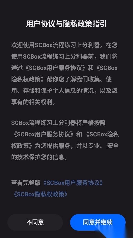 1. 第一步先打开软件,阅读说明内容后,点击“同意并继续”按钮进入下一步操作。