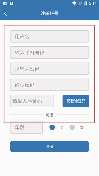 3、进行注册操作时,需按顺序填写【用户名】、【手机号码】、【密码】、【确认密码】,之后获取并填写验证码,最后点击【注册】按钮即可完成账号创建。