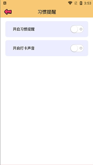 3、进入【习惯提醒】页面后,即可看到【开启习惯提醒】与【开启打卡声音】这两个选项。