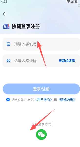 3、可通过输入手机号码完成短信验证进行快捷登录,也能使用微信账号实现一键登录。