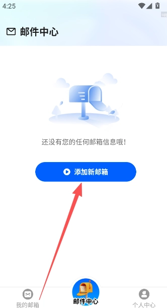 1、点击邮件中心上方的添加新邮箱功能选项进入。