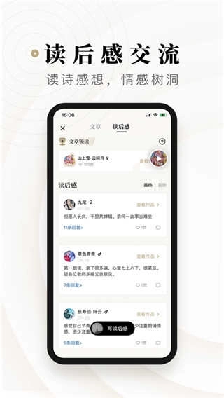 1.平台拥有规模庞大的诗歌社区,用户之间能够相互点赞、评论并分享各自的作品。