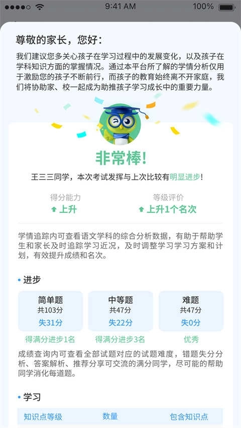 3.智能化的学习分析功能,能够助力学生知晓自身的学习进度以及薄弱之处。