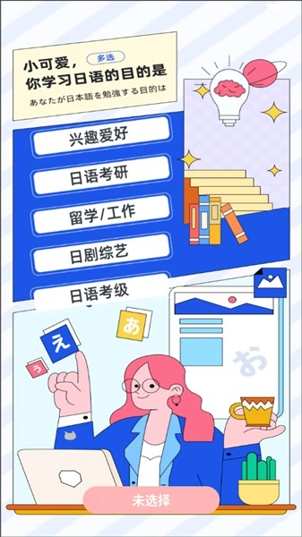 1、在本站安装日语GO应用后,启动软件时会先对用户的基本情况进行了解。