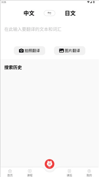 5、软件的翻译功能位于底部中间位置,用户可在此处选择拍照翻译或文本翻译功能进行使用。