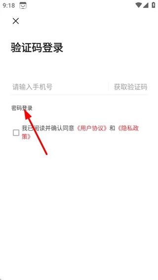 在验证码登录界面,点击密码登录选项,即可切换到密码登录页面。