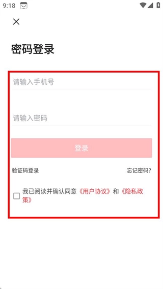 4、进入密码登录页面后,输入相关信息并勾选协议,随后点击登录按钮,即可完成登录操作。
