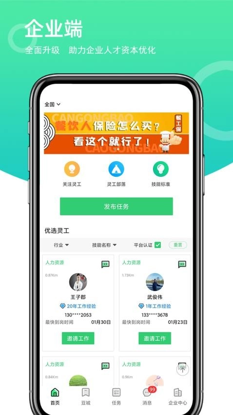 工邦是面向企业与个人的一站式互联网综合技能交易平台。企业可借助该平台随时随地发布各类工作任务,平台会依据职业类别为自由职业者精准匹配适配的任务,并实现任务执行流程与结果的在线监管,推动灵活用工多元化发展。这一模式既能助力企业提升效率、降低成本,也能为个人赋能以增加收入,从而构建起全新的灵活用工形态。