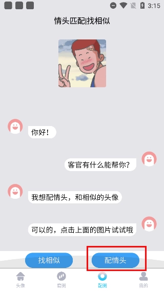 1、打开“情头匹配找相似”功能板块,点击上传一张图片。
