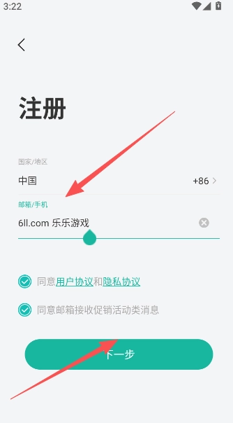 1、输入邮箱或手机号码完成注册,并开展后续操作。