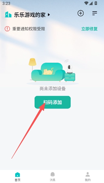 2、完成注册登录步骤后,进入首页并点击“扫描添加”,即可进行手机端的连接操作。