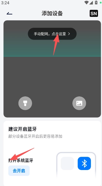 3、可通过扫码操作完成设备的连接与添加,若尚未购买产品设备,建议选择手动添加方式。