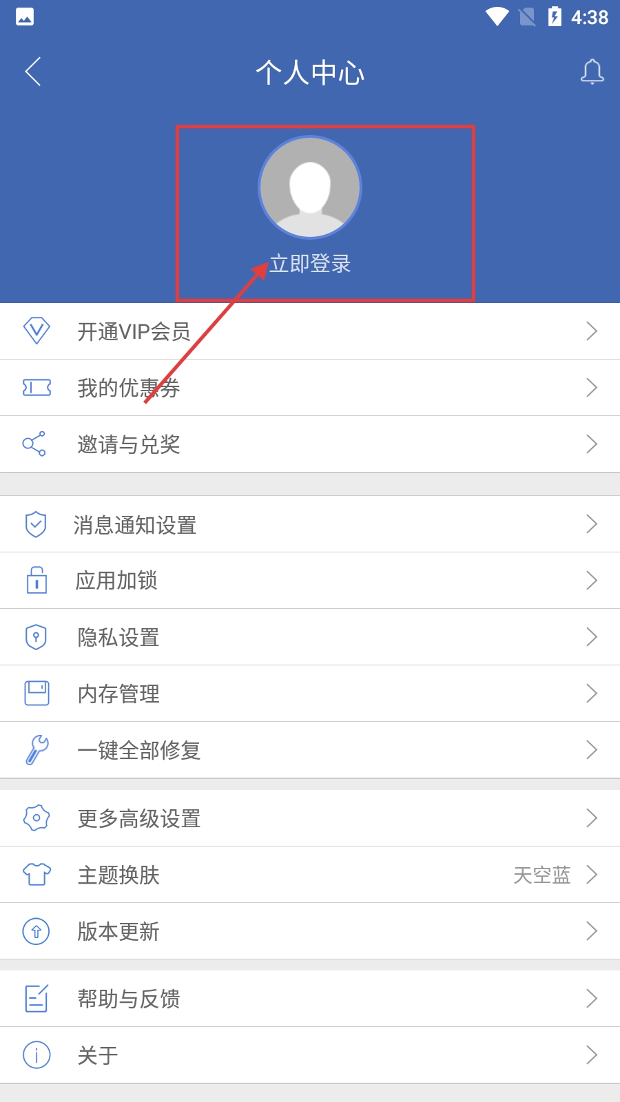 2、进入个人中心页面后,点击【立即登录】按钮,即可跳转至账号输入界面。