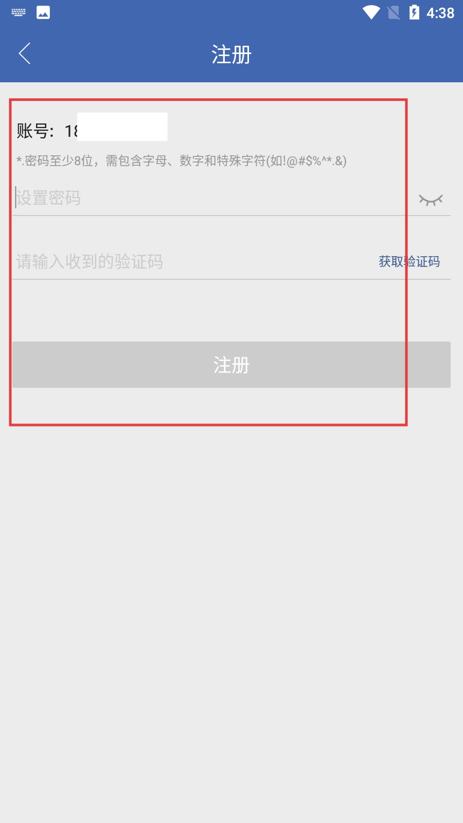 4、在注册页面设置好密码,获取并填写验证码后,点击【注册】按钮即可完成注册流程。