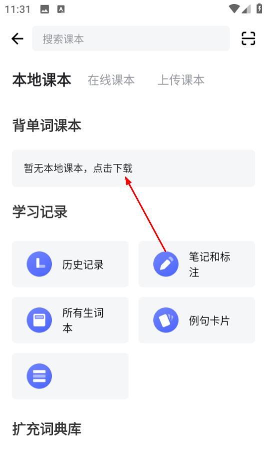 3、在课本选择页面,如果本地没有课本,点击操作,即可切换至在线课本页面。