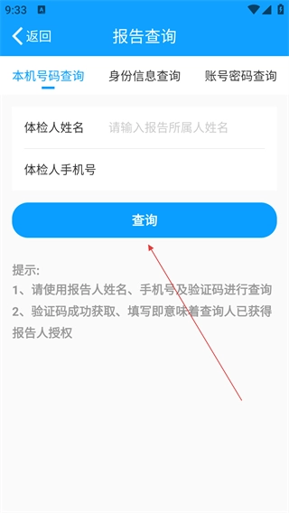 4、进入报告查询页面后,填写体检人的姓名、手机号等相关信息,点击【查询】按钮,就能获取对应的体检报告。