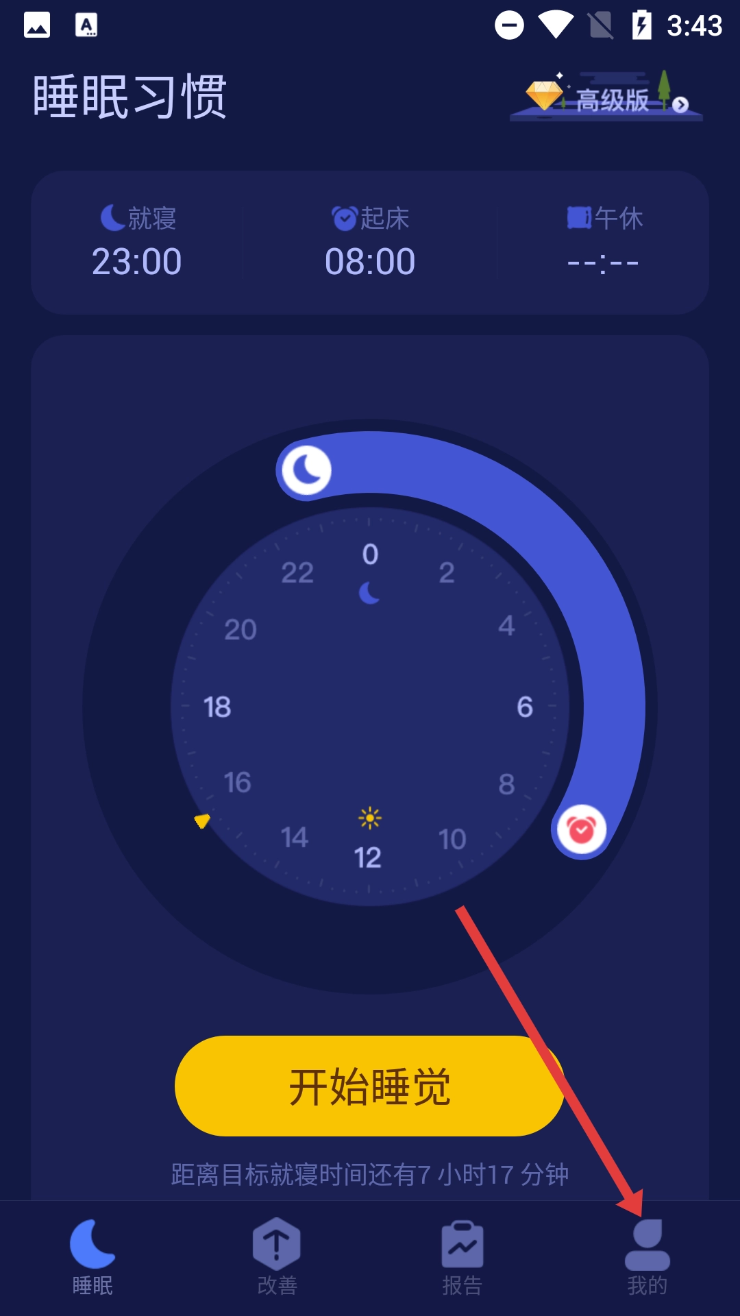 2、进入睡眠习惯主界面后,点击底部的【我的】选项,即可进入个人设置页面。