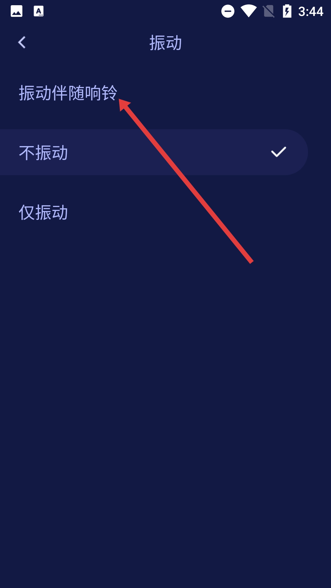 4、进入振动设置页面后,勾选【振动伴随响铃】这一选项,即可完成振动模式的相关设置。
