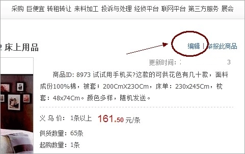 方法二:登录义乌购账号后,进入前台的产品展示页面,在页面右上角、标题的右侧位置(如下方图片红圈标注处)