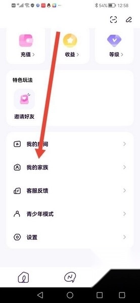 1、点击首页下方“我的图标”,找到“我的家族”