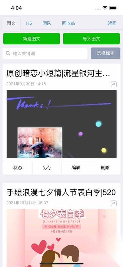 2、可以管理文本存储在自己的秀米账号中;