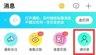 在消息界面,点击一下页面上通讯录这个选项