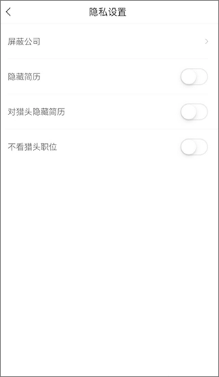 3、隐藏简历的操作步骤如下:进入隐私设置页面,点击屏蔽公司选项。