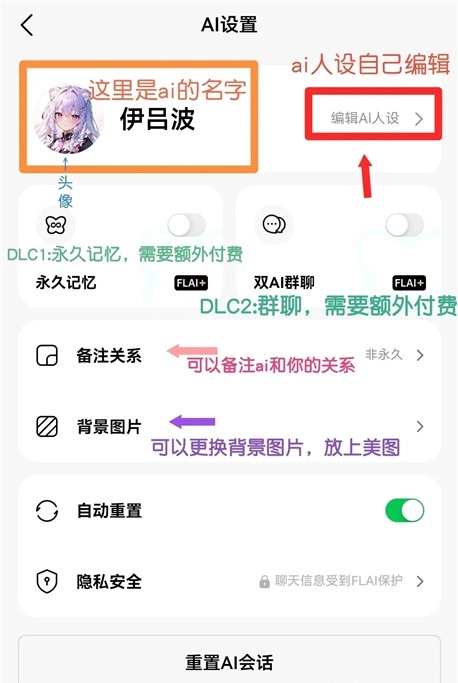 2、自动重置功能是专门为修改AI设定准备的。要是你想微调AI设定,又舍不得删掉和老公老婆的聊天记录,只要把这个功能关掉,就能调整设定而不会重置聊天内容啦。