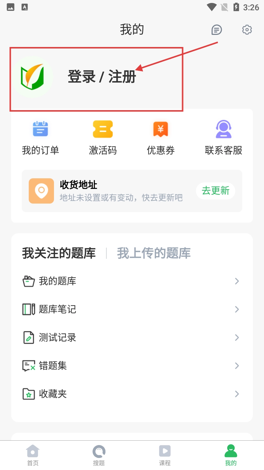进入“我的”页面后,点击【登录/注册】按钮,即可启动登录注册流程。